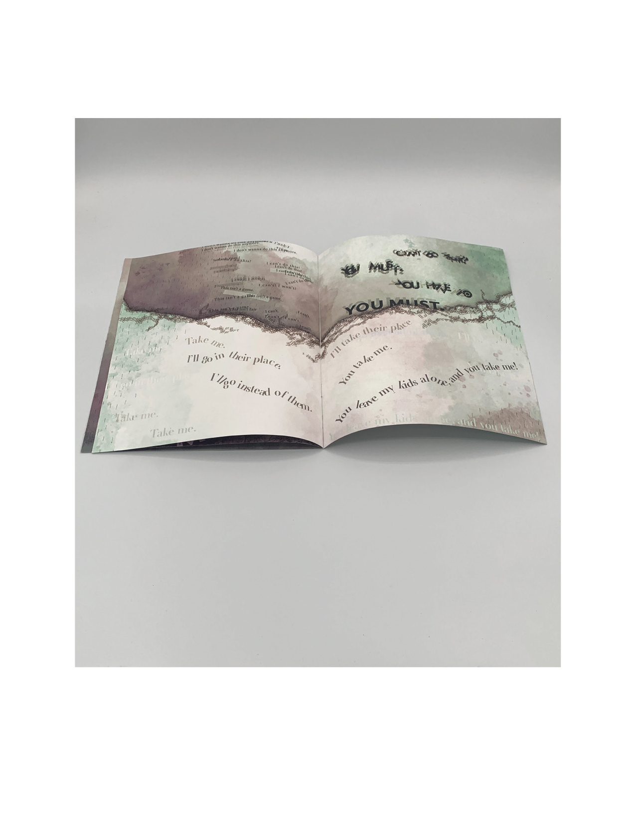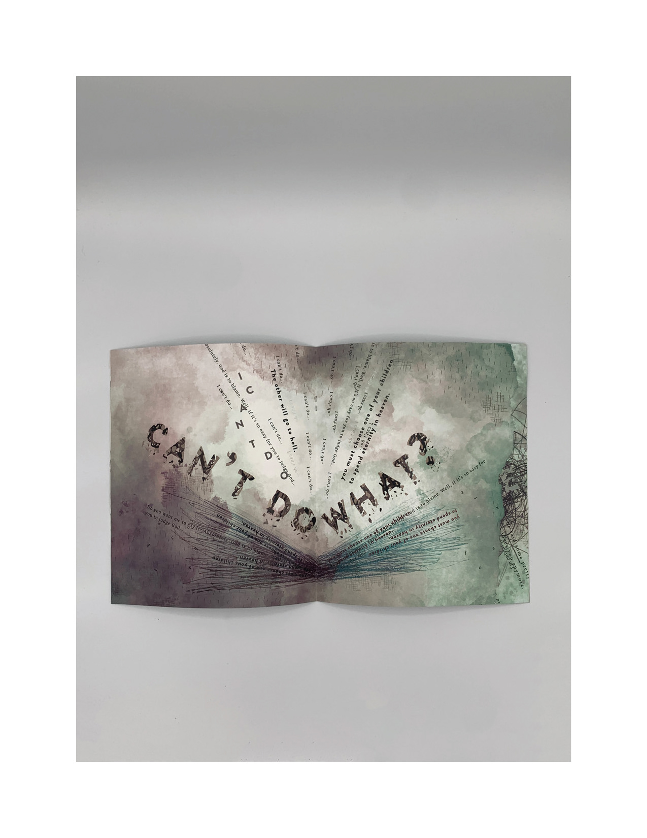 This Dialogue Book uses type as illustration to convey the emotion within an intense scene in one of my favorite movies titled The Shack. This book uses the written out dialogue exchanged between the characters to convey the emotion of the scene, rather than imagery. I chose to create a background with cool-toned colors, textures and forms that are similar to a cave, as that is where this scene takes place in the movie. I also chose to heavily experiment with breaking down typographic structures and reconstructing them into different forms to use type as illustration and texture. I drew inspiration from sedimentary layers, rough textures and natural rock to develop my custom type and typographic illustrations.